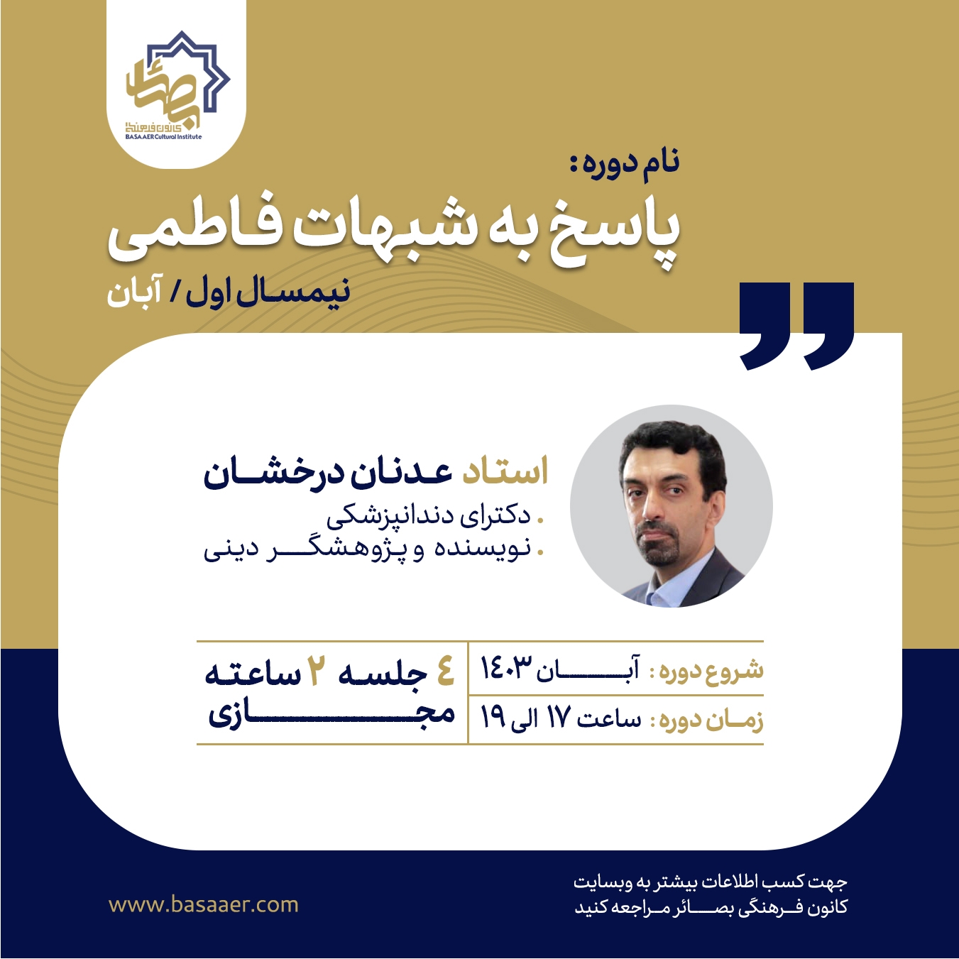 - نحوه برگزاری: به صورت آنلاین، در آموزشگاه مجازی بصائر.
